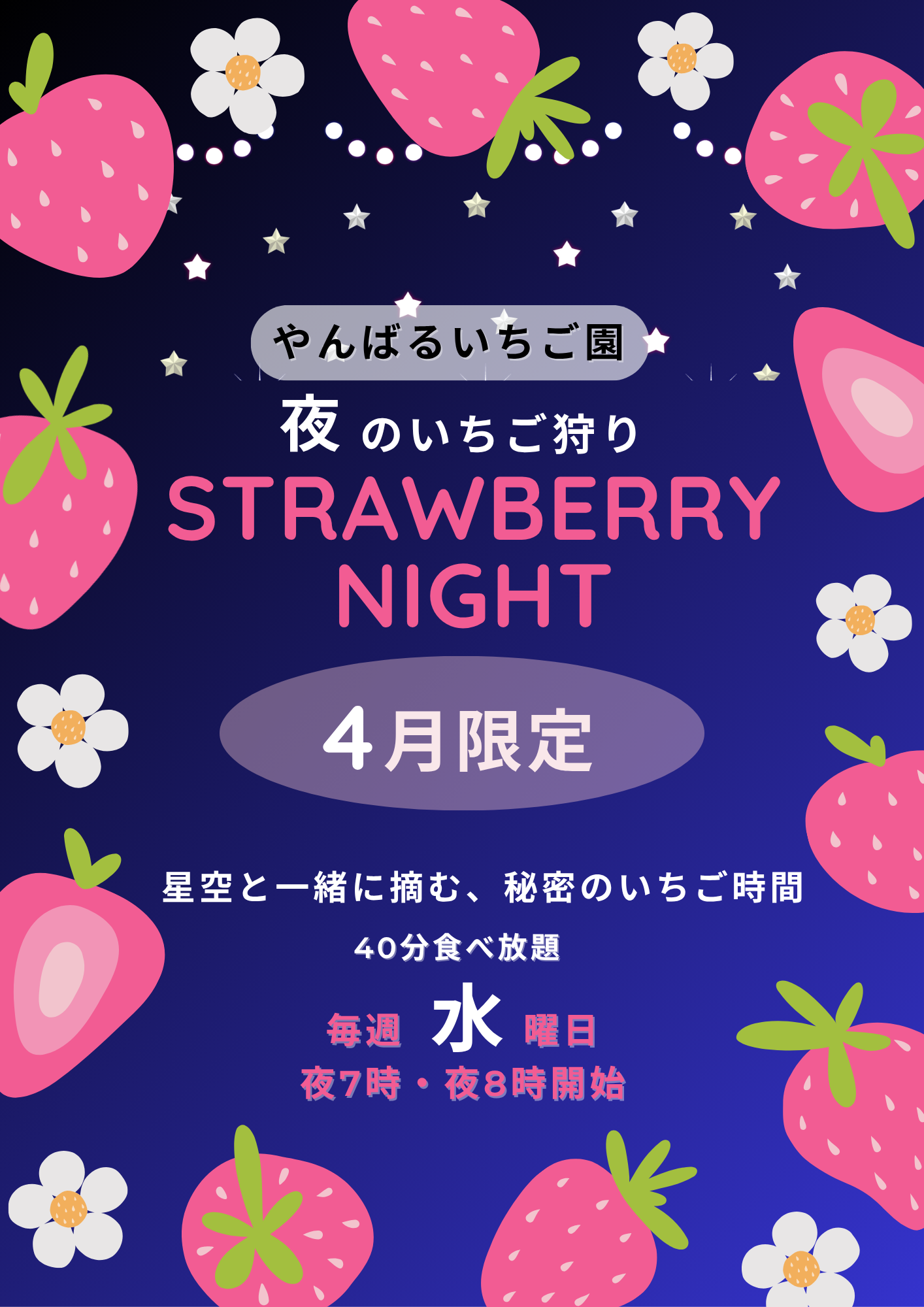 【4月水曜限定】夜のいちご狩り 予約始めました!